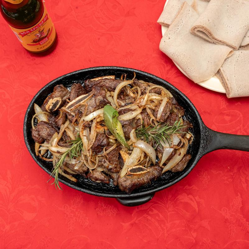 Pan roasted strips of lamb simmered with onion, butter, berbere sauce and spices.