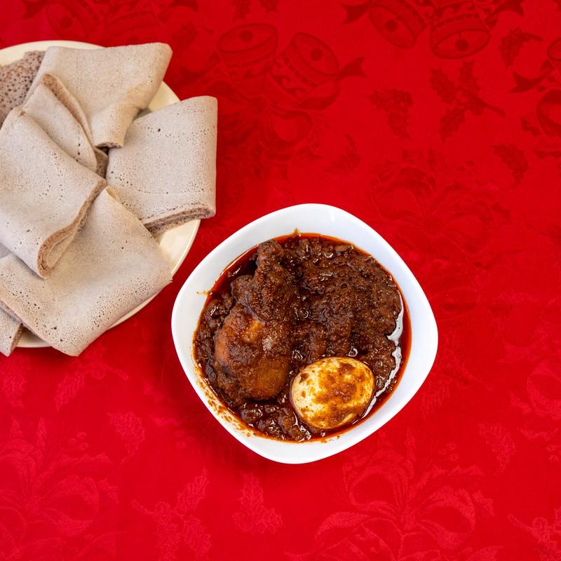 Mild lamb stew, delicately spiced with garlic, ginger and other spices. Served with injera.