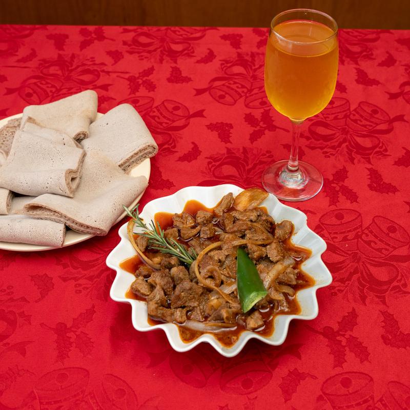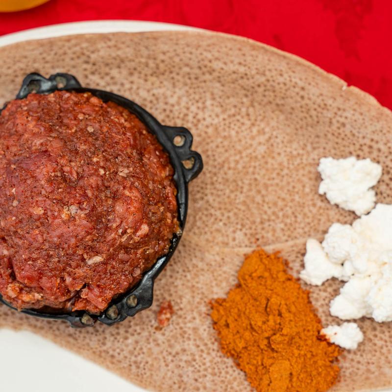 Saturday & Sunday • Spicy, Ethiopian style ground lamb meat, liver, and tripe, served with injera.